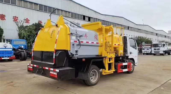 随底盘选装驾驶室。该车辆装有侧装垃圾桶升降装置,封闭式垃圾罐等装置,主要作用于餐厨垃圾收集,转运及卸料作业。整车长/轴距/前悬/后悬对应关系(mm)为:5995/3308/1632;5830/2950/1825;5505/2700/1750;防护材料:Q235A碳钢,连接方式:左右侧面与副梁采用焊接连接,后防护装置由专用装置代替,离地最小高度为360mm。ABS型号/厂家:ABS/ASR-12V-4S/4M/襄阳东风隆诚机械有限责任公司。
